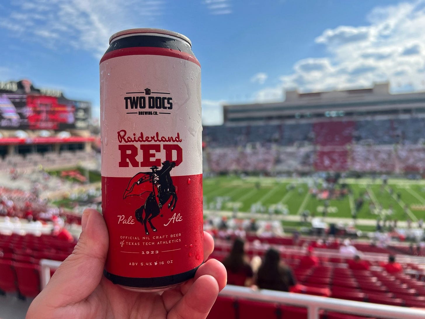 So yeah, I went to Lubbock, Texas last weekend. And probably most noteworthy about the trip was that there was not only beer offered at the Texas Tech football game, but even local beer. That beer would not have been possible just three years ago. Two Doc’s Brewing Company’s Raiderland Red is labeled as “the official NIL Craft Beer of Texas Tech Athletics.” The deal was announced over the summer, and a percentage of the sale of the beer will go toward a NIL (name, image, and likeness) collective like those that many universities have set up to compensate student athletes. It’s kind of murky waters to associate a beer brand with a university, but this setup is strangely allowed. And not surprisingly, given the spirit for the Texas Tech Red Raiders at their home stadium, I saw a lot of people drinking the beer at the game.