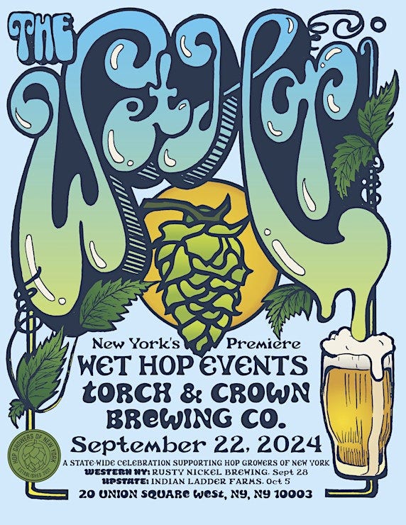 This Sunday from 2-7pm is the Hop Growers of New York’s Wet Hop Festival at Torch & Crown Union Square. You can spend the afternoon enjoying beers using the freshest of fresh hops grown right here in New York State at this first-of-its-kind event in the city. A $20 ticket gets you a stainless steel tasting cup, 3 tasting pours, and a ballot to vote in People's Choice Competition for the best Wet Hop beer. You can use the code BIG25NYC for 25% off tickets to the event.